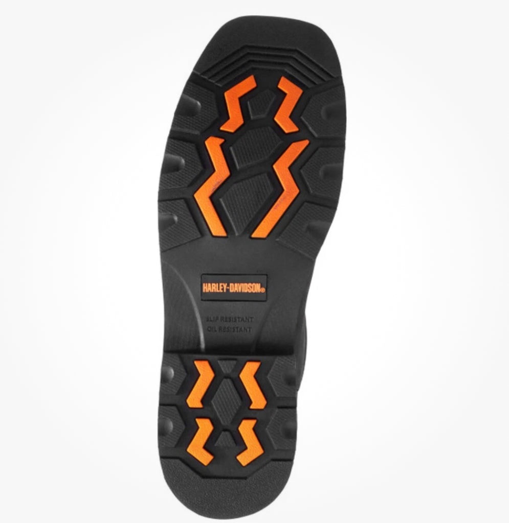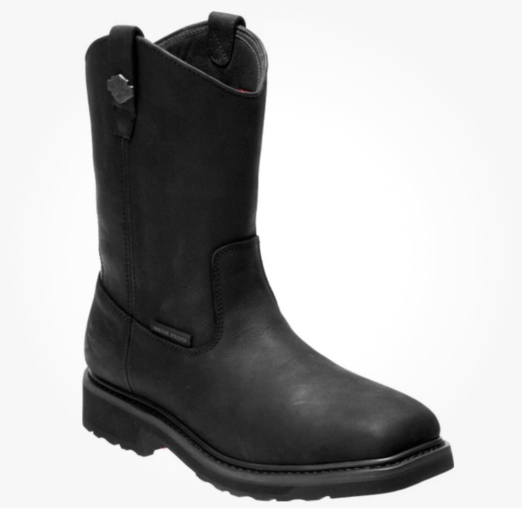 Harley-Davidson® Men's Altman Black Waterproof Motorcycle Boots D93561. Waterproof full-grain leather uppers combine with oil and slip resistant outsoles for a truly outstanding all-around boot. They are perfect for motorcycling and fashionable enough for office wear. They are perfect for most working environment, too. With jeans or slacks, these boots make an enduring Harley® statement. With two pull-on straps, the boots are a breeze to don. A debossed Bar & Shield® is on the heel's counter, and a metal badge adorns the pull-on straps. A waterproof fabric badge identifies this critical feature for quick identification. The leather is smooth and the vamp is clean and smart. The street side sole has Harley® orange tread elements and a Harley-Davidson® orange logo is inserted on the instep. The words Slip Resistant and Oil Resistant are debossed on the instep, as well. The boot's sole, insole and upper are bound using resoleable Welt construction processes, the most labor intensive and durable construction method available. For day-in and day-out wear in all weather conditions, these boots are an outstanding choice. Shaft height: 10", Heel height: 1.5". Sizes US: M 7-12, 13. Manufacturer Part Number, Black-D93561. Wolverine® and Harley-Davidson® have a long tradition of bringing original and functional footwear to our motorcycle enthusiasts. Loyal. Tough. Fearless. Our Footwear embodies the spirit of the open road, as well as the men and women who proudly wear the name. With a growing global presence, Harley-Davidson® Footwear markets functional riding and fashion footwear to anyone who seeks quality and values the Harley-Davidson® brand. Whether it's performance or fashion, we have what you need. Officially Licensed Harley-Davidson® Product by Wolverine®.