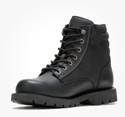 Harley-Davidson® Men's Clarkson Black 5-Inch Lifestyle Boots, D93862. This off-the-bike style will turn heads with its classic H-D® styling featuring all the classic elements of a traditional motorcycle boot. Made with full-grain leather, the boots have a supremely comfortable full-length mesh lining. The toe is rounded. A logo speed hook finishes off the lacing process. A metal Bar & Shield® logo adorns the shaft, and the eyelet panel has braided detailing for that premium look. Featuring full-grain leather, the back of the shaft has padded ribbing for extra comfort. The boot’s padded tongue has a debossed Bar & Shield® logo – the comfort enhancements never end. The street-side rubber outsole has a winged skull, and a contrasting sewn-in logo is centered at the instep. The boot's sole, insole and upper are bound using Goodyear® welt construction processes, a labor intensive and durable construction method. When the action calls for an off-the-bike experience, you can still take Harley® with you. Whether uptown, downtown, at work or play, these boots say it all. Shaft height: 5", Heel height: 1.25". Sizes US: M 7-12, 13. Manufacturer Part Number, D93862. Wolverine® and Harley-Davidson® have a long tradition of bringing original and functional footwear to our motorcycle enthusiasts. Loyal. Tough. Fearless. Our Footwear embodies the spirit of the open road, as well as the men and women who proudly wear the name. With a growing global presence, Harley-Davidson® Footwear markets functional riding and fashion footwear to anyone who seeks quality and values the Harley-Davidson® brand. Whether it's performance or fashion, we have what you need. Officially Licensed Harley-Davidson® Product by Wolverine®.