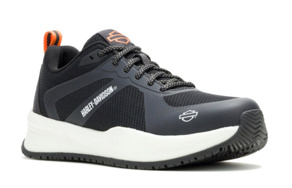 Harley-Davidson® Men's Rally All-Day Wear Sneakers, Black-D93961. Capture the essence of freedom and adventure with these versatile sneakers. They are lightweight, durable, and provide all-day comfort with breathable textile uppers. They provide unmatched comfort and protection whether on the road, at work, or on the go – a unique blend of functionality and design, while providing all-day comfort. Traditional styling coupled with cutting edge performance, your feet feel comfortable with each step or jump. Tonal Harley® orange logos appear on the tongue, and on the shaft. A pull-on strap in black and orange is at the heel. Black and white laces add to the attractive appearance. The uppers and lining are made with a textile mesh for maximum breathability. The rubble outsoles, means these shoes will go the distance. The sneaker’s sole, insole and upper are bound using cement processes, a proven technology that makes for a sturdy and durable sneaker. The end result? These sneakers will last for years. Uptown, downtown, at work or play, they will carry you in-style and comfort. Shaft height: 2.75", Heel height: 1.75". Sizes US: M 7-12, 13. Manufacturer Part Number, Black-D93961. Wolverine® and Harley-Davidson® have a long tradition of bringing original and functional footwear to our motorcycle enthusiasts. Loyal. Tough. Fearless. Our Footwear embodies the spirit of the open road, as well as the men and women who proudly wear the name. With a growing global presence, Harley-Davidson® Footwear markets functional riding and fashion footwear to anyone who seeks quality and values the Harley-Davidson® brand. Whether it's performance or fashion, we have what you need. Officially Licensed Harley-Davidson® Product by Wolverine®. These sneakers are not recommended for wear while riding a motorcycle.
