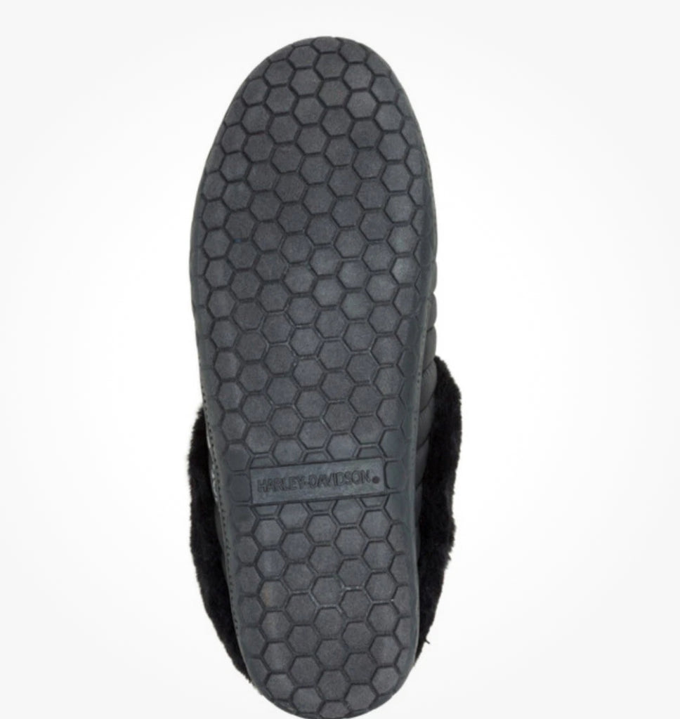 Harley-Davidson® Men's Fur Lined Black House Slippers, D93927. These slippers come with a signature buffalo plaid accent. Made with textile, with a plush faux fur cuff and lining and rubber outsoles, these Harley-Davidson® slippers are made for a comfy-cozy home life. Featuring a classic Harley-Davidson® Bar & Shield® printed logo and the buffalo plaid accent, these slippers are perfect for relaxing and strolling around the house, and are also suitable for the occasional trip to the mailbox or to fetch the morning newspaper. The style is classic with that special Harley® touch. The uppers are ribbed for a pleasing look, and they have a soft faux fur lining, as well. The outsole is rubber for a firm grip. The soles and the uppers are bound using cement construction processes. We think you’ll agree that when the boots come off, it’s time for Harley® slippers. Shaft height: 2", Heel height: 0.75". Sizes US: M 7-13 (Whole sizes only). Manufacturer Part Number, Black-D93927. Wolverine® and Harley-Davidson® have a long tradition of bringing original and functional footwear to our motorcycle enthusiasts. Loyal. Tough. Fearless. Our Footwear embodies the spirit of the open road, as well as the men and women who proudly wear the name. With a growing global presence, Harley-Davidson® Footwear markets functional riding and fashion footwear to anyone who seeks quality and values the Harley-Davidson® brand. Whether it's performance or fashion, we have what you need. Officially Licensed Harley-Davidson® Product by Wolverine®.