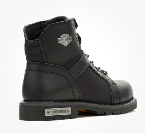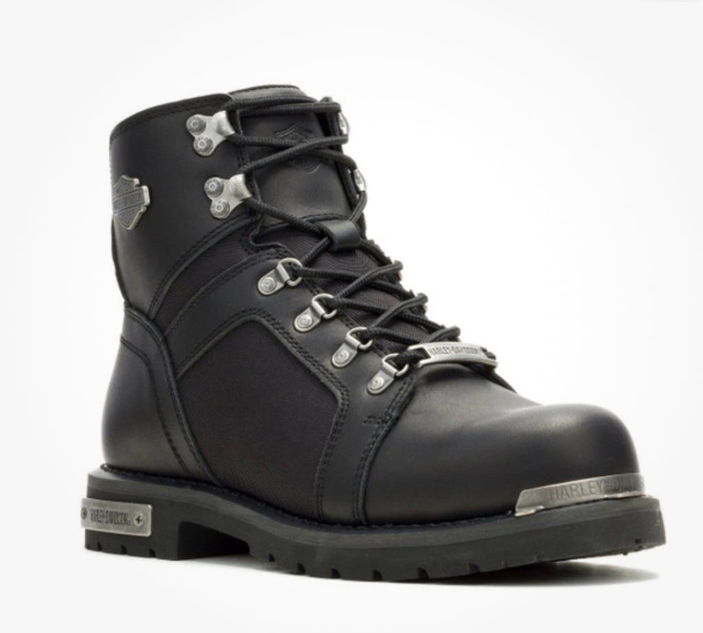 Harley-Davidson® Men’s Edgefield Black Leather Motorcycle Boots, D93885. Make a bold statement with the Edgefield casual motorcycle boot. The uppers are made with rugged full-grain leather with striking mesh panels placed where it counts. Its design is meant for those who live life on their own terms. The full-length mesh lining ensures breathability, while the Goodyear® welt construction provides unmatched durability. Perfect for owning the streets and turning heads wherever you go. Starting with a classically rounded toe, metal adornments abound with logo enhancements on the toe, the bottom lace, on the heel, and on the upper shaft. Four pairs of D-Rings ease the lacing process with two speeds to finish the job with a quick tie-off. Mesh breathing panels are strategically placed on the sides and under the laces for total foot comfort. A debossed logo is pressed into the padded tongue. The outsole is rubber for a nice and easy stride. The street-side tread elements feature Harley® orange logos. With every step you take and every mile marker you pass, you’ll understand what these boots are made for. Shaft height: 6-inches, Heel height: 1.25-inches. Manufacturer Part Number, D93885. Wolverine® and Harley-Davidson® have a long tradition of bringing original and functional footwear to our motorcycle enthusiasts. Loyal. Tough. Fearless. Our Footwear embodies the spirit of the open road, as well as the men and women who proudly wear the name. With a growing global presence, Harley-Davidson® Footwear markets functional riding and fashion footwear to anyone who seeks quality and values the Harley-Davidson® brand. Whether it's performance or fashion, we have what you need. Officially Licensed Harley-Davidson® Product by Wolverine®.