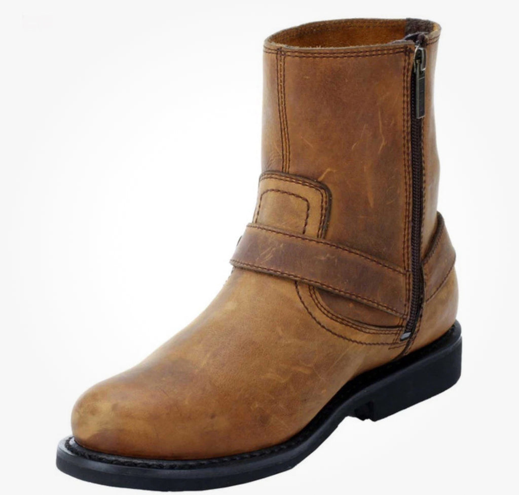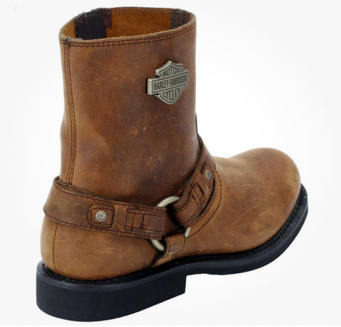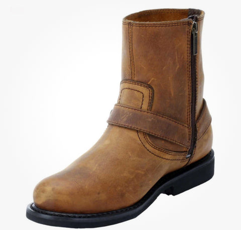 Harley-Davidson® Men's brown leather motorcycle boots. Uppers made from full grain leather. The boot features a comfortable full-length soft cushioned lining affording hours of fatigue-free wear. Shaft height: 7", Heel height: 1". They also feature undeniably reliable and durable YKK® inside locking zippers for ease of putting on and taking off. The outsoles are made of high quality rubber for comfortable standing or walking with a sure grip. The boot's sole, insole and upper are bound using Goodyear® Welt construction processes, adding years of use with proper care. Manufacturer Part Number D95263
