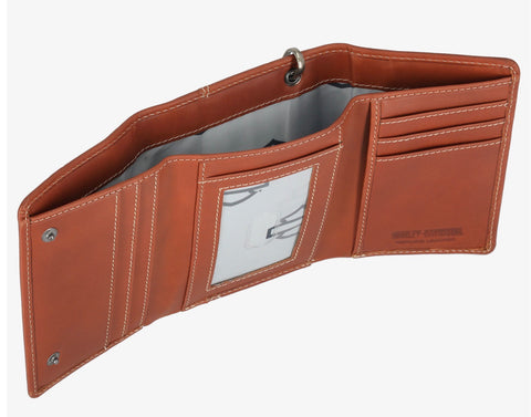 Harley-Davidson Men's Traditional Bar & Shield Embossed Medium Trifold Wallet With Chain Brown MWM120/35