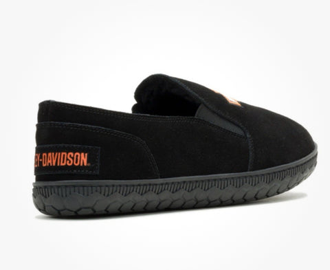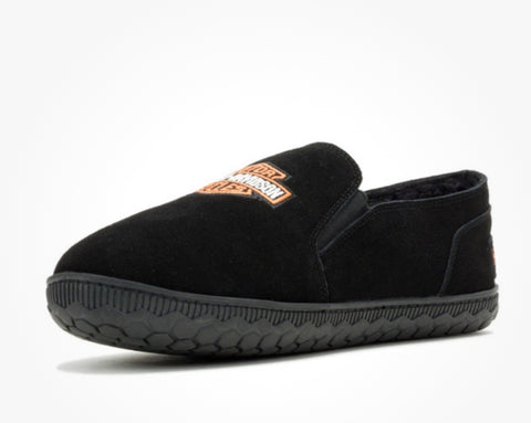 Harley-Davidson® Men’s Bar & Shield Logo Black Fur Lined Slippers, D93990. Winter, spring, summer, or fall, your feet will love these slippers. Featuring a classic embroidered Harley-Davidson® Bar & Shield® logo on the vamp, with another on the backside of the heel. An elastic gore means a perfect fit. These slippers have a textile upper with a full-length plush faux fur lining for a comfy-cozy feel any time of day. They are perfect for lounging around the house, providing a hint of adventure in every step. The outsole is made of rubber with grippy tread elements for any smooth surfaces in your home, not to mention a quick trip to the mail box. The soles and the uppers are bound using cement construction processes. Wear with or without socks. Either way we think you’ll agree - when the shoes come off, it’s time for Harley® slippers. Heel height: 1"; Shaft height: 2.25”. Sizes US: M 7-13 (Full sizes only). Manufacturer Part Number, Black -D93990. Wolverine® and Harley-Davidson® have a long tradition of bringing original and functional footwear to our motorcycle enthusiasts. Loyal. Tough. Fearless. Our Footwear embodies the spirit of the open road, as well as the men and women who proudly wear the name. With a growing global presence, Harley-Davidson® Footwear markets functional riding and fashion footwear to anyone who seeks quality and values the Harley-Davidson® brand. Whether it's performance or fashion, we have what you need. Officially Licensed Harley-Davidson® Product by Wolverine®.