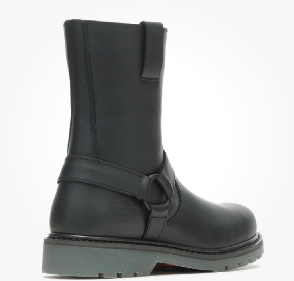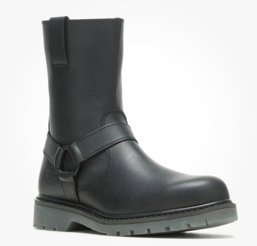 Harley-Davidson® Men's Widman Riding Appropriate* Black Motorcycle Harness Boots, D96282. You will own the road in these Widman harness-styled motorcycle boots. They are made with polishable, durable full-grain leather. YKK® locking zippers make donning these boots ultra-convenient – just pull-on, zip-up, and off you go. A full-length mesh lining means hours of comfort. The translucent bottom gives this blacked-out style extra attitude. The toe is rounded and the O’Ring is blacked out. A debossed Bar & Shield® logo appears on the outside face of the heel’s counter. A logo pull-tab is affixed to the zipper. The outsole is made with lightweight polyurethane for a fatigue-free day. The street-side outsole also features a Harley® orange logo, which is imbedded at the instep. Goodyear® Welt construction completes the boot with trusted durability. This boot is rated "BEST" for slip and oil resistance. Shaft height: 8.75", Heel height: 1.75". Sizes US: M 7-12, 13. Manufacturer Part Number, Black-D96282. Wolverine® and Harley-Davidson® have a long tradition of bringing original and functional footwear to our motorcycle enthusiasts. Loyal. Tough. Fearless. Our Footwear embodies the spirit of the open road, as well as the men and women who proudly wear the name. With a growing global presence, Harley-Davidson® Footwear markets functional riding and fashion footwear to anyone who seeks quality and values the Harley-Davidson® brand. Whether it's performance or fashion, we have what you need. Officially Licensed Harley-Davidson® Product by Wolverine®. *Riding Appropriate – Abrasion, slip, and oil-resistant boots, ideal for riding motorcycles.