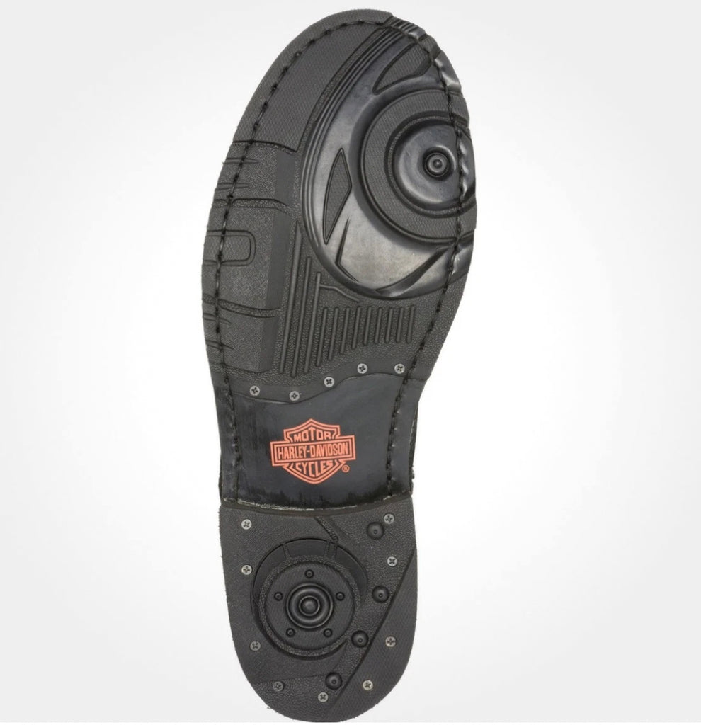Harley-Davidson® Women's Addie Zip 5.5-Inch Black Leather Motorcycle Boots, D84814. Discover all the freedom the road can give you with these boots – sleek in styling and fashion aware, above all, these boots are about riding. Made with a full-grain, fashionably textured leather, with a full-length mesh lining, these boots will make for hours of comfort. The toe is rounded and the vamp has a bold, single cross-strap and buckle. With YKK® locking inside zippers, step-in, zip-up, snap the zipper security strap over the zipper’s tab, and you are on your way. A debossed Bar & Shield® logo has been pressed into the outside face of the heel’s counter. Rubber outsoles make each step seem effortless. The boot's sole, insole and upper are bound using Goodyear® Welt construction, completing the boot with trusted durability. Adding to the 5.5-inch shaft, a gentle 1.5-inch heel adds a perfect lift. For a secure grip on the ground, the street-side outsole has tread elements in the shape of a breather. Another Harley® logo can be found on the street-side instep. For riding, work or play, no matter the activity, these boots will be there for you when needed. Total height: 7”, Shaft height: 5.5", Heel height: 1.5". Sizes US: M 5-11. Manufacturer Part Number D84814.