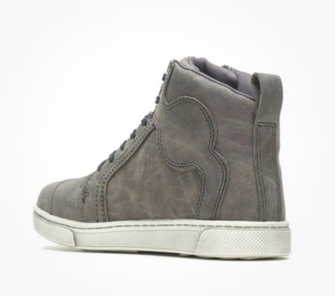 Harley-Davidson® Women's Bateman Riding Appropriate* Grey 4.5-Inch Motorcycle Boots, Grey-D84657. The Bateman boot series legacy continues for women with these motorcycle-ready boots with comfort designed into each step you take. Featuring a flat sole, they easily cross from the bike to any outdoor activity where being light afoot and casually cool is the goal – for running, walking, jumping, or riding. These boots are made with full-grain leather uppers and have a full-length mesh lining. The toe has a leather reinforcing shifting pad. The boot’s herringbone white and black patterned laces are reflective to be better seen in low light conditions. The boots come with a matching second pair of laces. The boots also have an ankle protection insert. A pull-on loop is at the top of the back of the shaft. A Bar & Shield® logo is debossed on the padded tongue, and a metal Bar & Shield® V-Wing logo has been placed on the shaft. A cushioned shaft means hours of comfort. The street side rubber soles are white with a classic orange Bar & Shield® logo at the instep. The boot's sole, insole and upper are bound using cement construction processes, a time honored and durable method that allows for a flexible and easy stride. Shaft height: 4.5", Heel height: 1". Sizes US: M or W 5-10, 11. Manufacturer Part Number, Grey-D84657. Wolverine® and Harley-Davidson® have a long tradition of bringing original and functional footwear to our motorcycle enthusiasts. Loyal. Tough. Fearless. Our Footwear embodies the spirit of the open road, as well as the men and women who proudly wear the name. With a growing global presence, Harley-Davidson® Footwear markets functional riding and fashion footwear to anyone who seeks quality and values the Harley-Davidson® brand. Whether it's performance or fashion, we have what you need. Officially Licensed Harley-Davidson® Product by Wolverine®. *Riding Appropriate – Abrasion, slip, and oil-resistant boots, ideal for riding motorcycles.
