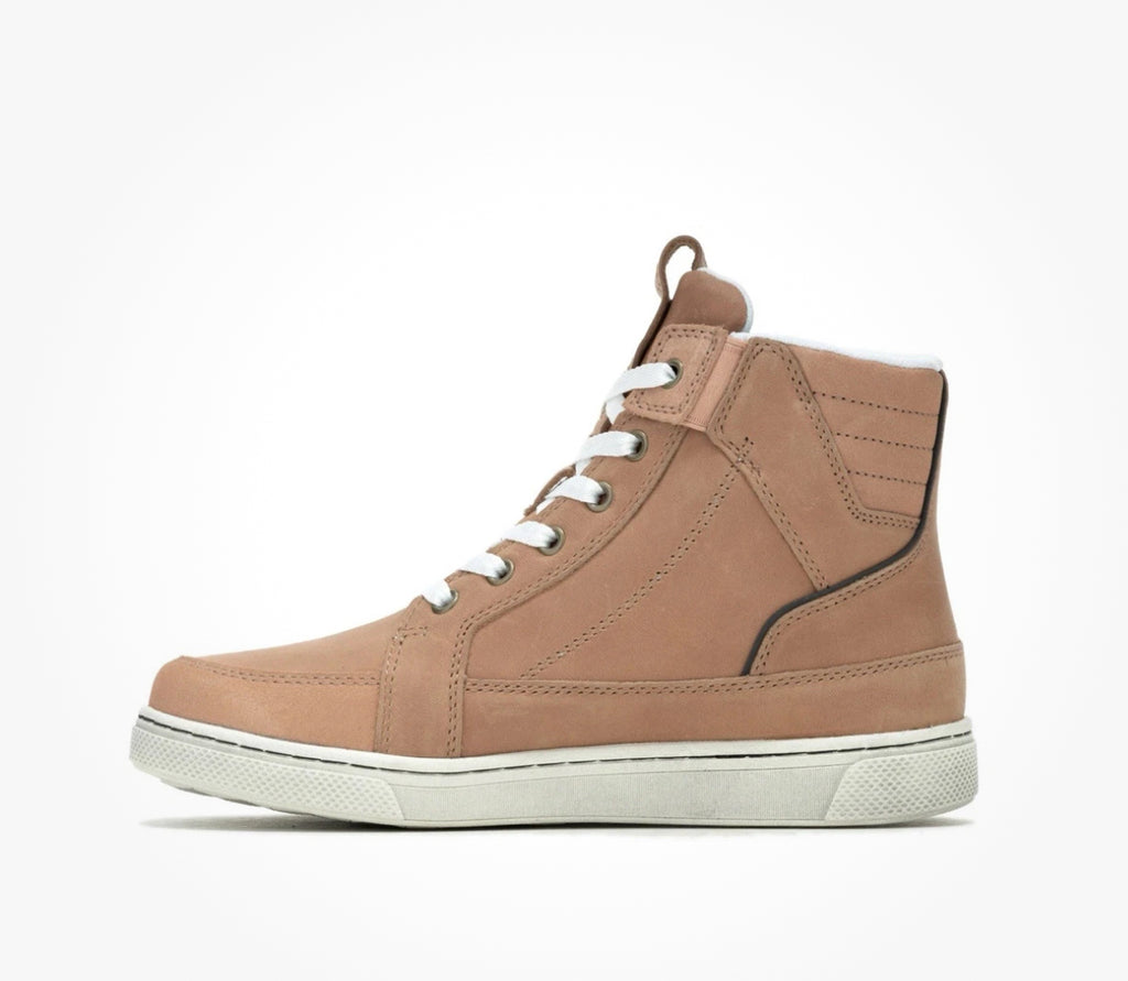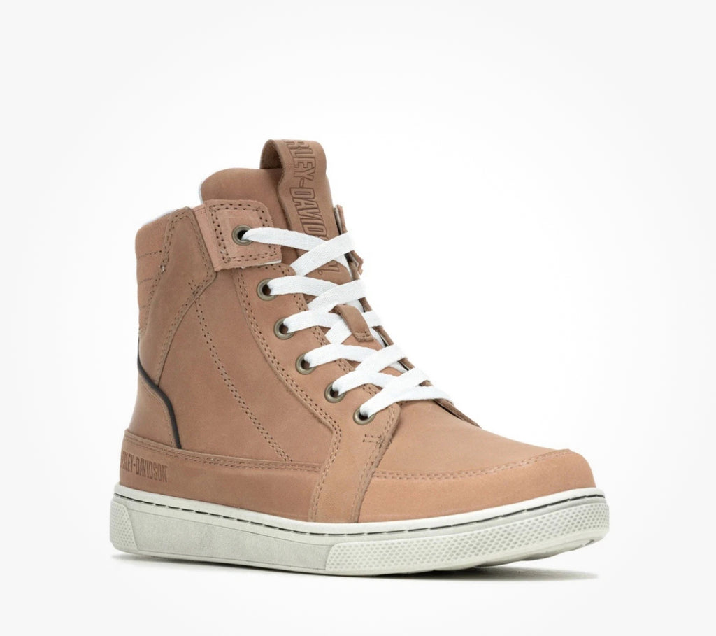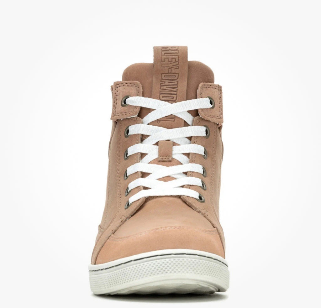 Harley-Davidson® Women's Riding Appropriate* Arbury 4.5-Inch Dusty Rose Brown Waterproof Motorcycle Sneaker Boots Dusty Rose Brown, D60004. Kick start your ride with The Arbury full-grain leather sneaker with suede accents. Featuring Poron® ankle protection, 3M™ reflective piping for added visibility, and waterproof protection, these boots are road and fashion ready. Built on slip and oil resistant rubber outsoles, these boots will keep you safe while giving you the urban style you crave. White laces match the outsoles, contrasting nicely with the leather uppers. The tongue is padded and a logo pull-on strap aids in donning. A debossed logo is also found on the outside face of the heel’s counter. The street-side sole has a classic Harley® orange Bar & Shield® logo. The shoes are built for the bike and for whatever follows after the kick-stand goes down. Total height: 5.5", Shaft height: 4.5", Heel height: 1". Sizes US: M 5-10, 11. Manufacturer Part Number Dusty Rose Brown-D60004. Wolverine® and Harley-Davidson® have a long tradition of bringing original and functional footwear to our Motorcycle enthusiasts. Loyal. Tough. Fearless. Our Footwear embodies the spirit of the open road, as well as the men and women who proudly wear the name. With a growing global presence, Harley-Davidson® Footwear markets functional riding and Motorcycle footwear to anyone who seeks quality and values the Harley-Davidson® brand. Whether it's performance or Motorcycle, we have what you need. Officially Licensed Harley-Davidson® Product by Wolverine®. *Riding Appropriate – Abrasion, slip, and oil-resistant boots, ideal for riding motorcycles.