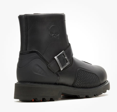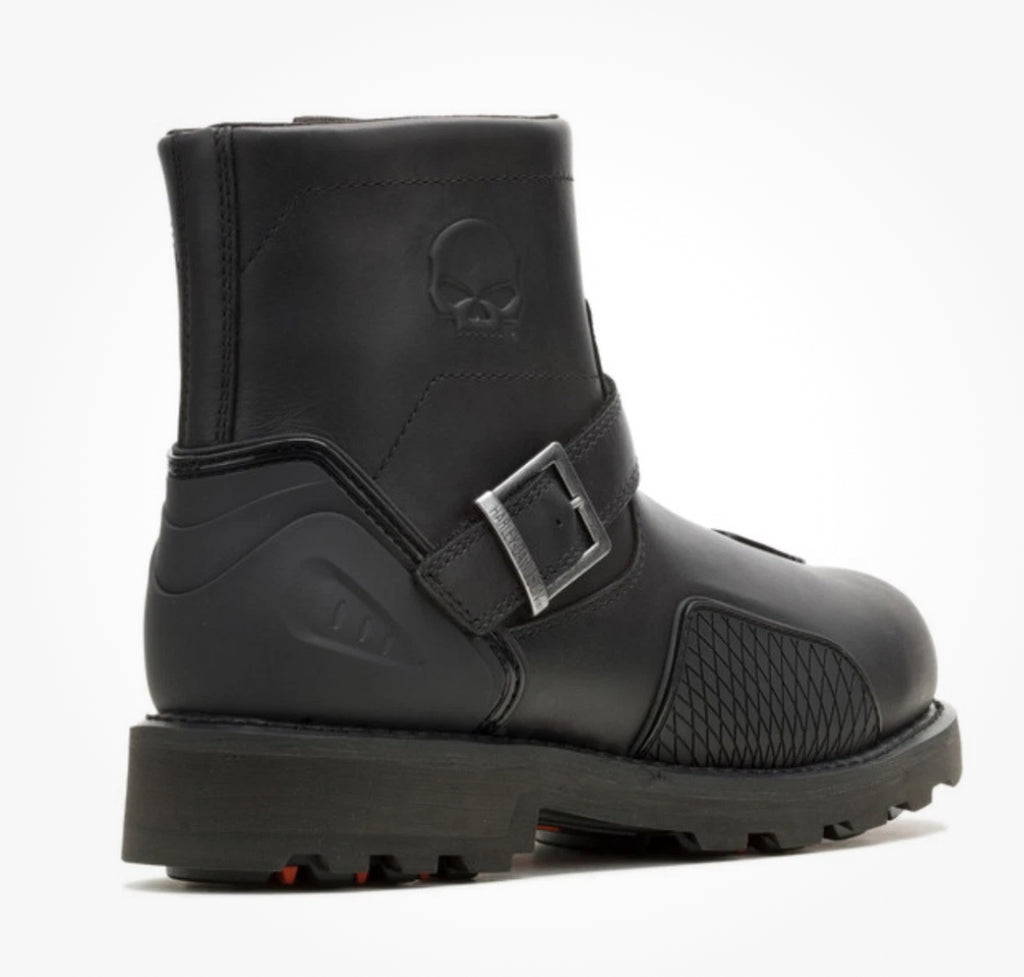 Harley-Davidson® Riding Appropriate* Men’s Shrader Skull Ride Leather Motorcycle Boots, D96319. Made for the true motorcyclist, these smoking hot Shrader Skull Ride boots are unmatched for whatever awaits you around the next curve. Every possible feature makes these boots a must for any serious motorcyclist. They are made of heat resistance waterproof full-grain leather, have a breathable Hydro-Guard™ waterproof membrane, YKK® locking inside zippers, D30® ankle protection, 3M™ reflective piping, and abrasion resistant overlays where most needed. With built-in patented Shock Absorber Twin Pad™ Comfort Technology, your foot is cushioned against shock with each step, leading to increased comfort. The toe is rounded, and a front crossing strap attaches to a logo buckle on the side of the shaft. A debossed Willy G logo adorns the upper area of the shaft. The outsole is made of rubber for a sure footing, with tread elements that will keep you upright. A Harley-Davidson® logo is imbedded at the instep. The boot's sole, insole and upper are bound using Goodyear® Welt construction processes, a labor intensive and durable construction method. If you’re looking for a boot ready for anything and everything, this one is the answer. This Harley® tough boot is ready for business. Shaft height: 6-inches; Heel height: 1.5-inches. Manufacturer Part Number, D96319. Wolverine® and Harley-Davidson® have a long tradition of bringing original and functional footwear to our motorcycle enthusiasts. Loyal. Tough. Fearless. Our Footwear embodies the spirit of the open road, as well as the men and women who proudly wear the name. With a growing global presence, Harley-Davidson® Footwear markets functional riding and fashion footwear to anyone who seeks quality and values the Harley-Davidson® brand. Whether it's performance or fashion, we have what you need. Officially Licensed Harley-Davidson® Product by Wolverine®. *Riding Appropriate – Abrasion, slip, and oil-resistant boots, ideal for riding motorcycles.