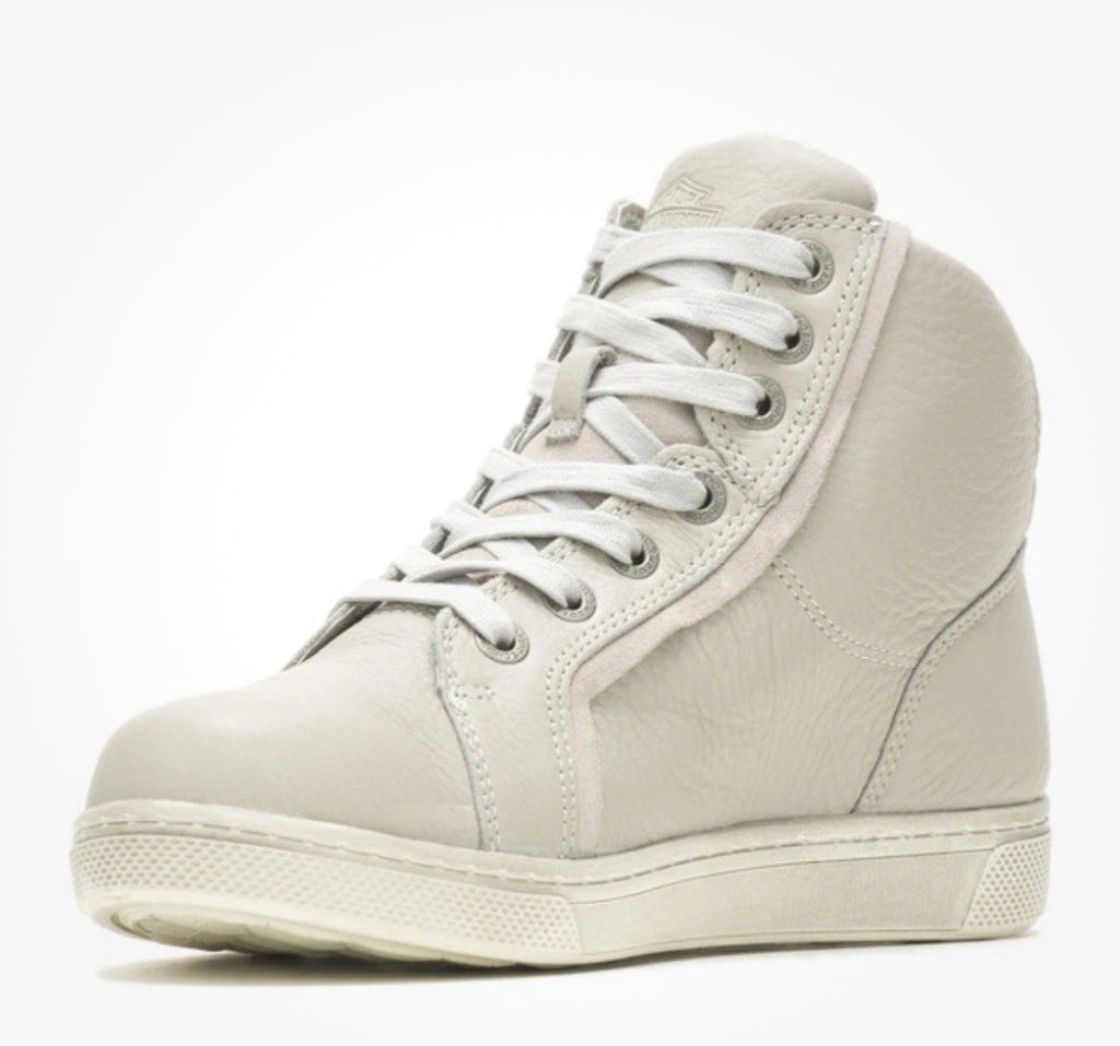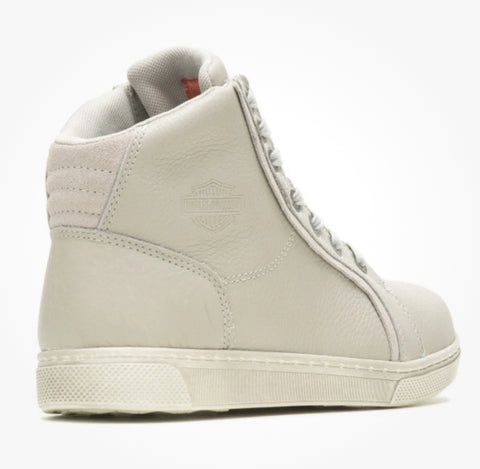 Harley-Davidson® Women's Riding Appropriate* Mackey 4-Inch Light Grey Waterproof Motorcycle Boots, Light Grey-D87224. Experience the freedom of a sneaker, and the function of a boot. An unusual tough-girl moto vibe style goes with you into the evening's activities when these boots are worn with skirts or skinny jeans. And on a motorcycle, these boots bring a completely different look - tough and ready for anything. If being different is important, these Mackey boots are just that. With a lace-up styling, logo eyelets and a Bar & Shield® logo on the tongue and shaft, you're sure to be seen and noticed. The boot’s leather uppers have a slight texture. The toe is round and the sole is flat. The boots are made with waterproof full-grain leather uppers with a breathable Hydro-Guard™ waterproof membrane lining. PORON® is built into the boots, providing ankle impact protection. The boots are also CE certified as protective footwear for motorcycle riders. The soles are rubber on the street side. The boot's sole, insole and upper are bound using cement construction processes, a time honored and durable method that allows for a flexible and easy stride. The street side sole has an embedded Harley® orange Bar & Shield® logo at the instep. These boots are street right and road ready. Total height: 5.25”, Shaft height: 4", Heel height: 1.25". Sizes US: M 5-10, 11. Manufacturer Part Number, Light Grey-D87224. Wolverine® and Harley-Davidson® have a long tradition of bringing original and functional footwear to our Motorcycle Lace-Up enthusiasts. Loyal. Tough. Fearless. Our Footwear embodies the spirit of the open road, as well as the men and women who proudly wear the name. With a growing global presence, Harley-Davidson® Footwear markets functional riding and fashion footwear to anyone who seeks quality and values the Harley-Davidson® brand. Whether it's performance or fashion, we have what you need. Officially Licensed Harley-Davidson® Product by Wolverine®. *Riding Appropriate – Abrasion, slip, and oil-resistant boots, ideal for riding motorcycles.